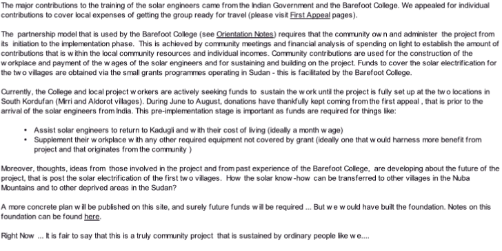 Project Timeline.First Sudanese Barefoot Solar Engineers.
